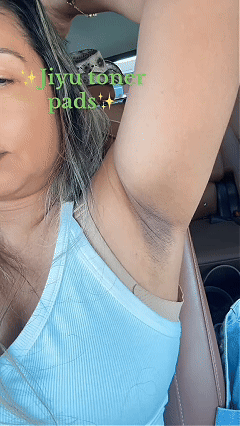 "Probé de todo para aclarar mis axilas y nada. Con JIYU en menos de un mes la piel se ve mucho más clara y ya no me da pena levantar los brazos."