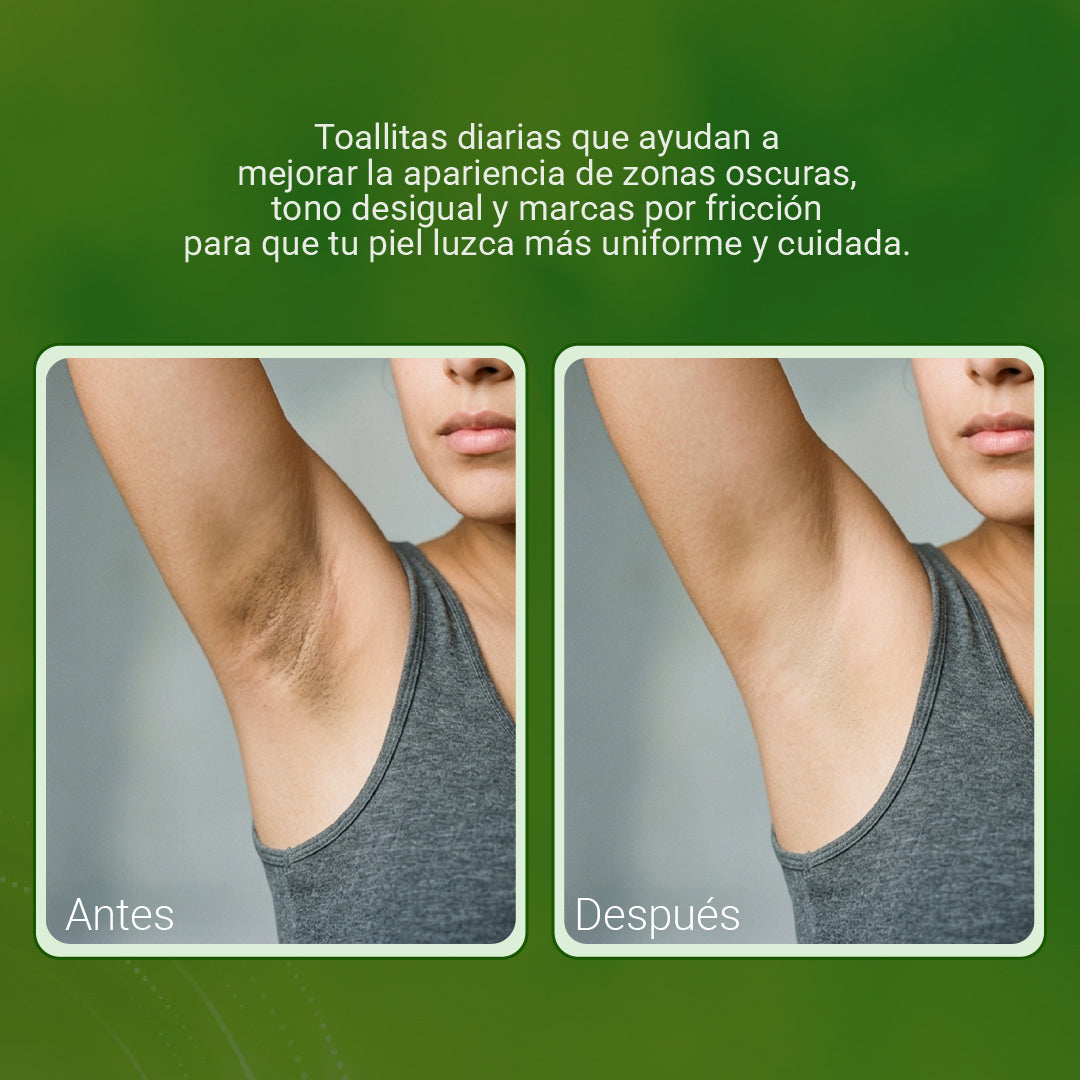 Sirven para aclarar zonas oscuras como axilas, entrepierna (zona V) y otras áreas con hiperpigmentación, dejando el tono más uniforme.